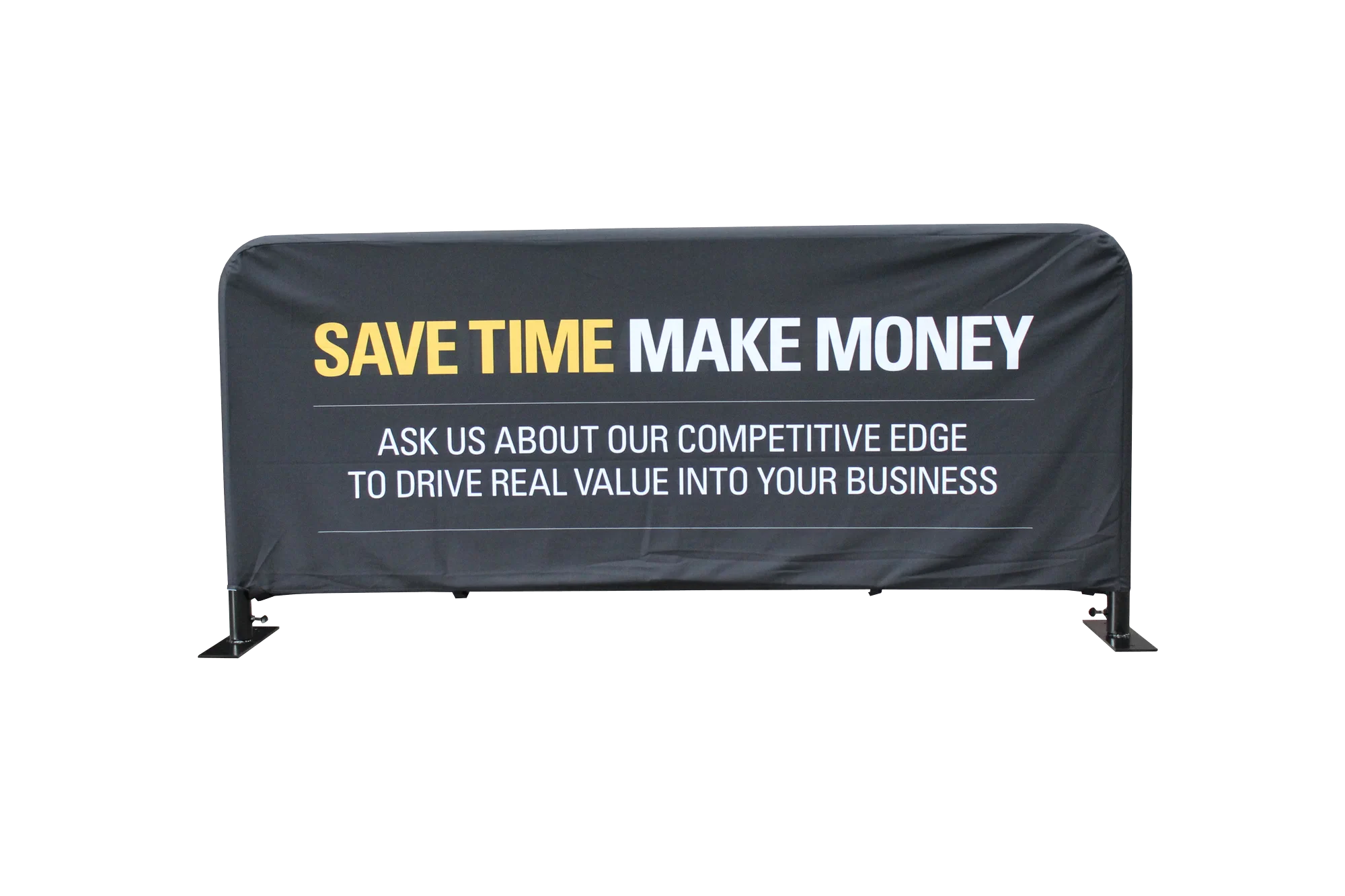 You are able to attach your Crowd Control Barrier Banner to an existing barrier structure using zip ties or bungee toggles threaded through the banner’s eyelets. Alternatively, the fitted banner style is can be designed to fit over a barrier and hug it. Our drop over style is specially printed with half of the artwork upside down so that you drape it over the barrier and the artwork is correct on both sides. See the video below for how to set up your drop over banner.