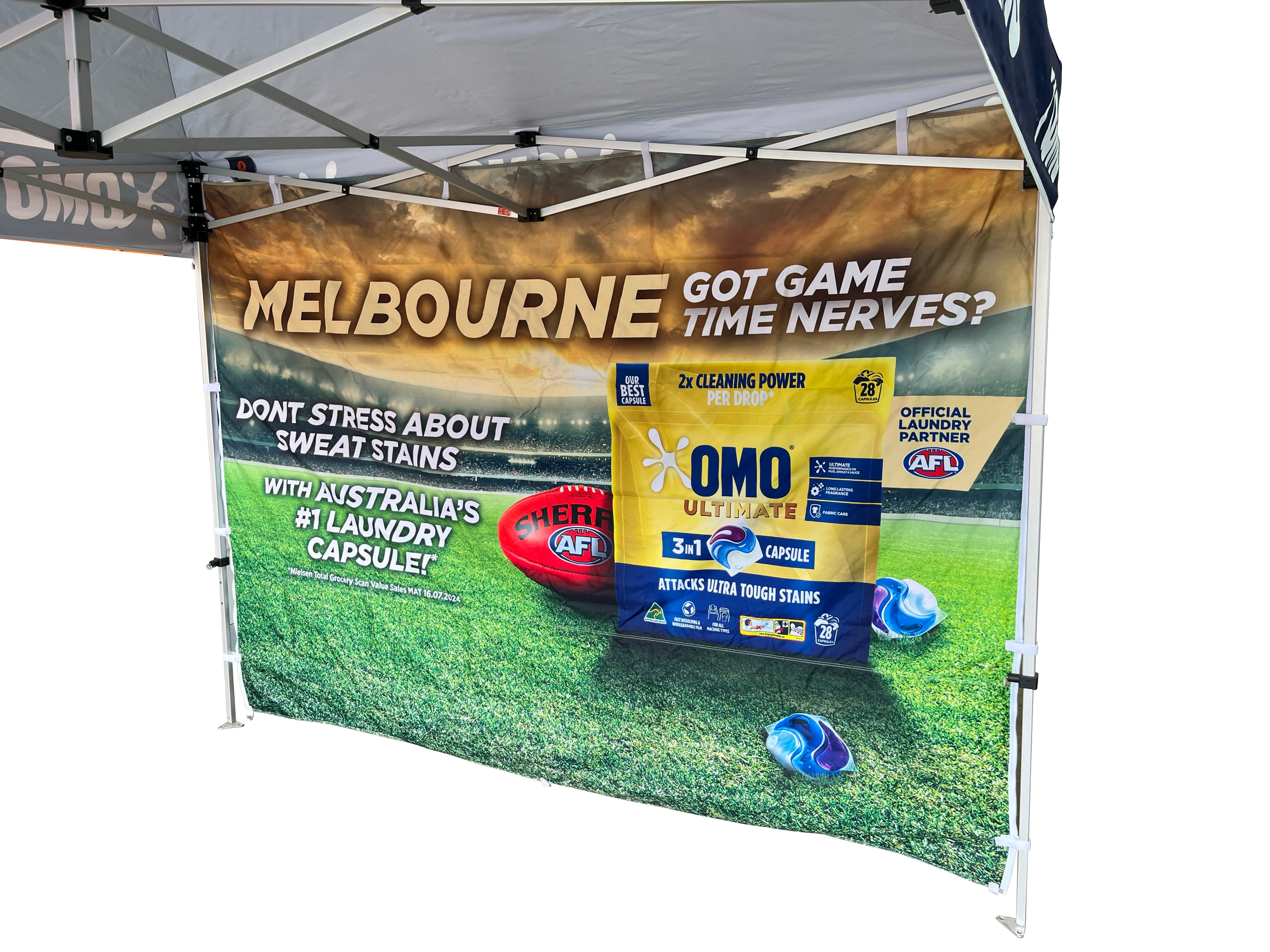 We’ve been using your marquee every weekend at various markets. I love products that are well designed to suit their purpose, and yours has delivered on that. It’s acid test was the very high winds we had on a Saturday at Kelvin Grove Village Market. At the high end of the hill, other stall holders were dismantling their whole marquee, and commented they couldn’t believe our marquee was not affected. We’d tied both rear marquee guy ropes to a bull bar and tow bar, and had your weight bags on each marquee corner. Massive winds, the tent took it, no problem.